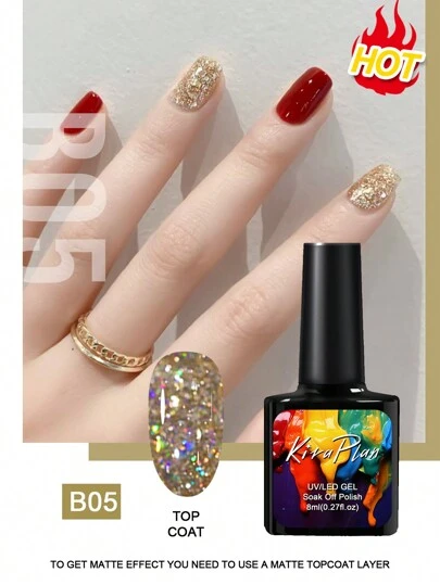 1pc Champagne Gold Color Gel Nail Polish, 6D HOLOGRAPHIC GLITTER Rhinestone COLLECTION Popular Series Nail Gel 9 Colors Vibrant All Seasons Glitter Snowflake Gel Polish- UV/LED Soak Off Semi-Permanent Varnish For DIY Manicure Nail Salon New Year Christmas Nails Goth Fashion Y2k Winter Klein Blue Pink Purple White Brown - Champagne - View 5