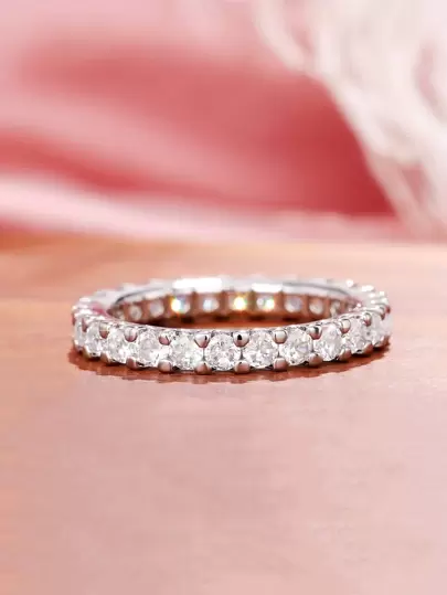 1pc Exquisite Cubic Zirconia Ring, Suitable For Women, Can Be Used As Valentine's Day Gift, Wedding/Engagement Jewelry, Gift For Mom, Mother's Day Present - Silver - View 1