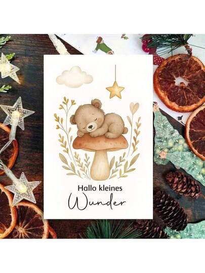 1pc Charming "Hallo Kleines Wunder" Card With Envelope Watercolor Bear Illustration Design, Soft Tone & Nature Elements, Great For New Parents & Baby Shower Gifts, Ideal For New Arrival Events, Baby Greeting Card|Gentle Theme Card|Paper Card - Multicolor - View 12