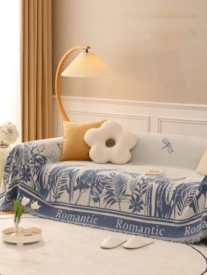1pc Chenille Fabric Sofa Cover - Blue - View 1