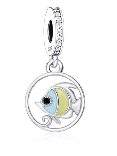 HuooNew 1pc Chic 925 Sterling Silver Fish Shaped Pendant With Beads For Diy And Commemoration, Unisex For Parties And Banquets - Q3500 - View 1
