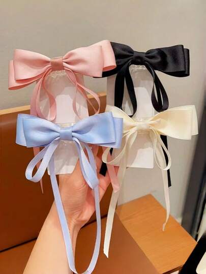 1pc Children's Minimalist Fashion Bowknot Low Ponytail Hair Clip, Versatile Elegant Sweet Soft Ribbon Hair Accessory - Multicolor - View 1
