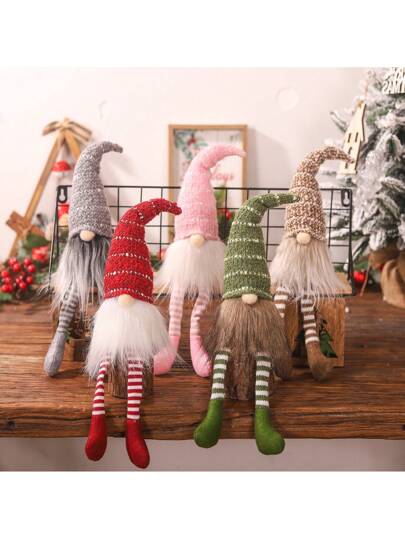 1pc Christmas Decor Colorful Cartoon Long Leg Faceless Doll Figurine With Knitted Striped Hat Forest Gnome Desktop Ornament,Christmas - Multicolor - View 1