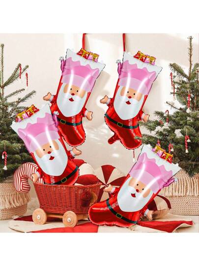 1pc Christmas Stocking Foil Balloon, Long Sock Balloon, Ideal For Christmas Party And New Year Decoration - Multicolor - View 1