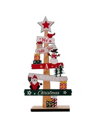 1pc Christmas Tree & Snowman Wooden Home Decor, Office Party Tiered Tray Desktop Decoration (Merry Christmas) - Multicolor 2 - View 1