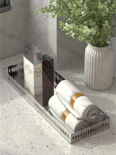 1pc Chrome Bathroom Vanity Tray, Metal Toilet Tank Tray, Kitchen Trays, 18" x 6" Rectangle Bathroom Tray for Counter, Chrome Tray for Soap Dispenser Perfume Jewelry - Silver - View 1