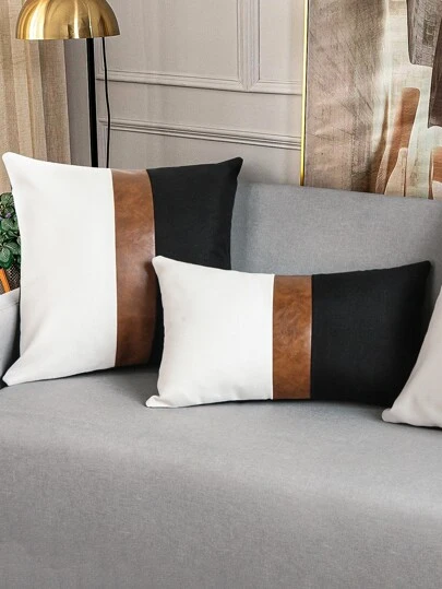 1pc Color Block Cushion Cover Without Filler, Modern Throw Pillow Case For Sofa, Home Decor - Multicolor - View 1