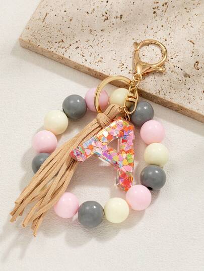 1pc Colorful Acrylic Letter A Tassel Beaded Keychain, Fashion Keyring Decoration For Women Backpack Car Keys, Suitable For Daily Commute - Multicolor - View 1