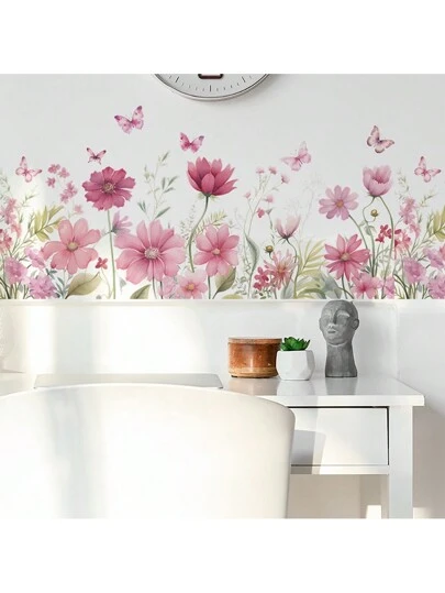 1pc Colorful Floral & Butterfly Wall Decal,Stickers,Wall Decal, Vinyl Decal For Home Decorations,Spring Decoration Items Refresh Your Home,Rama Decoration Stickers Gifts Birthday Graduation - Multicolor - View 7