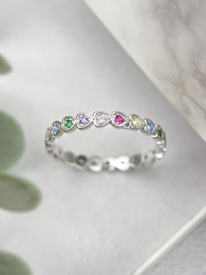 Stylever 1pc Colorful Heart Shaped cubic zirconia Ring Ladies Jewelry For Women s925 Sterling Silver Elegant Romantic Ring Fine Jewelry Gift For Girls Dating Decor - Silver - View 1