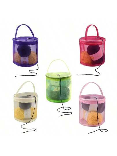 1pc Colorful Nylon Mesh Woven Crochet Storage Bag - Durable Handcraft Organizer Pouch With Zipper Closure, Suitable For Yarn, Crochet - Rose Red/Purple, Yarn Storage Bag - Multicolor - View 10