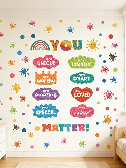 1pc Colour Quote Wall Sticker,Slogan Self-Adhesive Wall Stickers, For Suitable For Girls' Rooms, Nurseries, Playrooms, Children's Rooms, Classrooms, Bedrooms, Living Rooms, Home Decor, Art Schools, And Other Similar Spaces - ZST23 - View 1