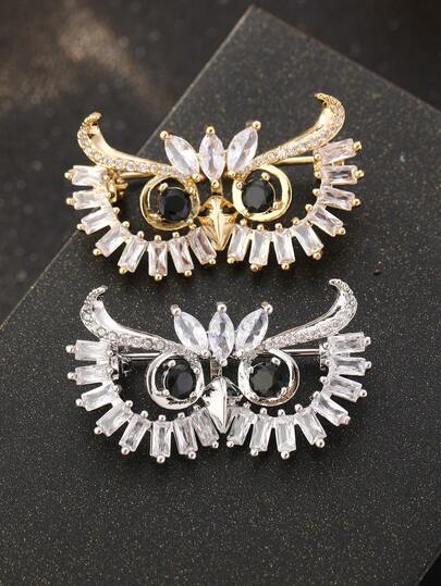 1pc Copper Owl Brooch Pin With Sparkling Cubic Zirconia, Suitable For Daily Wear, Gift For Girlfriend, Halloween, Christmas Jewelry - Owl - View 1