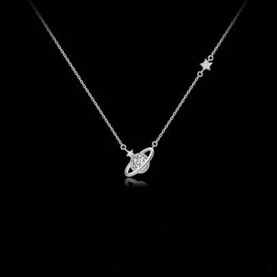 1pc Cosmic Star Planet Necklace For Women, Delicate Design, Elegant Luxury Clavicle Chain, Ins Style - Silver - View 1