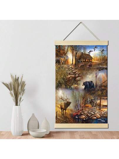 1pc Countryside Scenery, Elk And Black Bears,Farmhouse,Framed Hanging Canvas Paintings,Print Hanging Paintings,Canvas Painting For Home Decoration,Living Room, Retro Wall Art Wall Decor, Home Decor,Room Decor,Ready To Hang - Color Printing - View 8