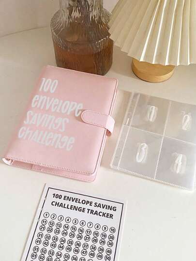 1pc Couple 100-Day Savings Challenge Loose-Leaf Book With Printed Numbers, Cash Envelop Planner,School Supplies,Back To School - Pink - View 1
