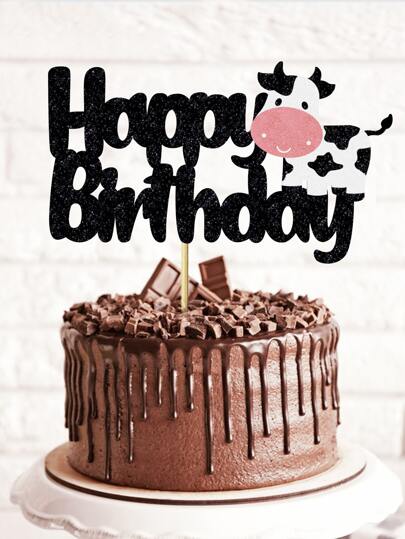 1pc Cow & Slogan Graphic Cake Topper, Paper Cake Top Decoration For Birthday Party,Christmas - Multicolor - View 1