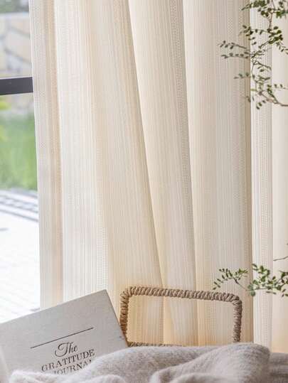 1pc Cream Sheer Voile Curtain, Romantic French Country Style For Bedroom, Living Room, Balcony, Allows Light To Pass Through But Not See Through - Beige - View 1