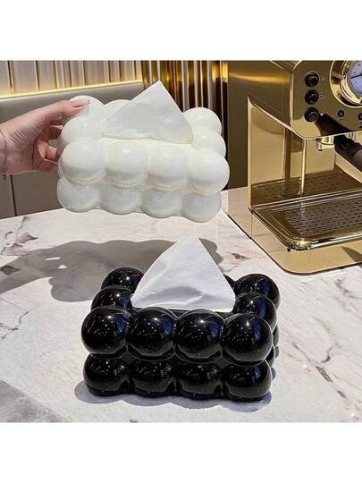 1pc Cream-Style Tissue Box, High-End Home Living Room Tabletop Facial Tissue Dispenser With Spring-Loaded Mechanism - Multicolor - View 1