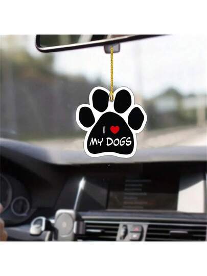1pc Creative 2d Acrylic Dog Paw Car Pendant, Keychain, Festival Decoration, Christmas Gift, For Ladies' Bag - Black and White - View 1