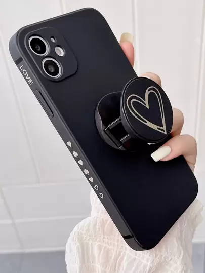Valentines Y2K 1pc Creative Cartoon Romantic Heart Foldable Push-Pull Stand Phone Case With Anti-Drop/Slip Straight Edge, Compatible With Samsung IPhone Redmi - Black - View 1