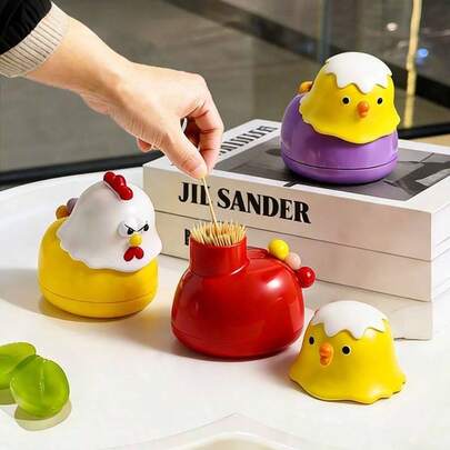 1pc Creative Chicken Toothpick Holder, Cute Desktop Decor, Luxury High-End 2-In-1 Toothpick & Floss Dispenser, Housewarming Gift, Surprise Gift For Friends - Chick Storage Jar - View 1