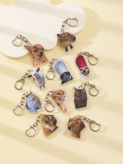 1pc Creative Meme Couple Keychain Dialogue Cat Topic&Spitting Goat And Huh Cat Meme Funny Acrylic Keychain Pendant/Backpack Ornament /School Bag Accessories/Purse Pendant/Friend's S Halloween Accessories Teachers Day Christmas Gift Ideas Bag Lanyards With Id Holder Car Accessories Bag Charms - Multicolor - View 1