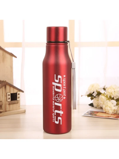 1pc Creative Single Layer Insulation Stainless Steel Sports Water Bottle With Handle & Beer Cup For Outdoor Activities Large Capacity - Red - View 1