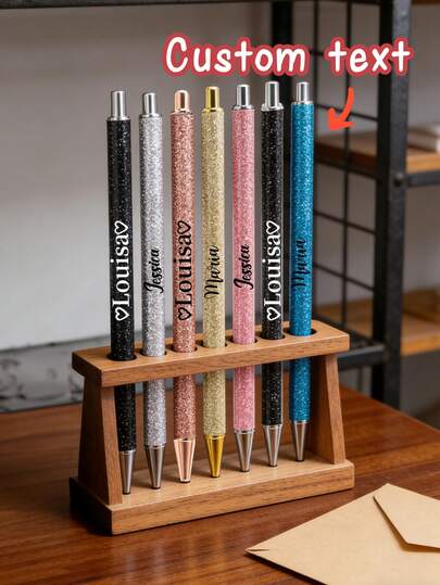1pc Custom Personalized Glitter Crystal Pens - Custom Name/Text, Elegant Glitter Finish, Durable Metal Tip, Perfect For Weddings, Birthdays, Anniversaries - A - View 1
