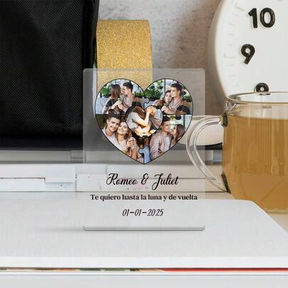 1pc Customised Acrylic Sign Desktop Decor, Custom Photo & Custom Name & Custom Text & Custom Date, Personalized Desktop Decoration Home Decor Room Decor Wedding Decor Anniversary Celebration Decor, Gift For Boyfriend Girlfriend Lover Newlyweds Wife Husband Friend Family - Multicolor - View 1