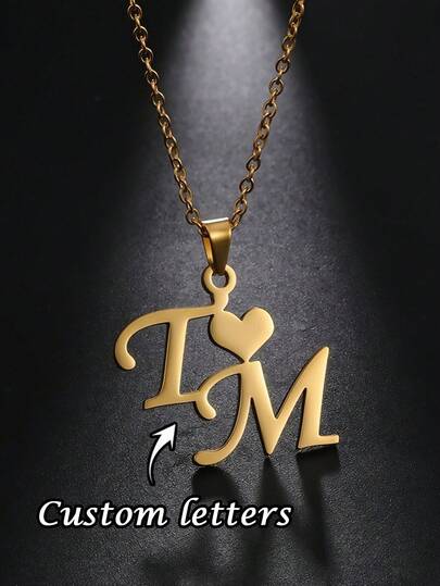 1pc Customizable Double Letter Necklace, With Two Custom Styles To Choose From, Personalized Couple Anniversary Birthday Gift, Elegant Design, Exquisite Craftsmanship, Touching Collection, Custom Engraved Female Jewelry, Stainless Steel Jewelry, Couple Necklace, Customizable Female Necklace, Is The Best Holiday Gift For Loved Ones Or Relatives And Friends On Halloween Or Christmas - Multicolor - View 1