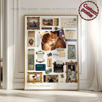 1pc Customizable Matchbox Template Poster, Editable On Canva, Printable Wall Art, Vintage Wedding Anniversary Gift, Elegant Couple Memorabilia, Room Decor, Customizable Wall Art, Self-Customize Photo, Customizable Item - Multicolor - View 17