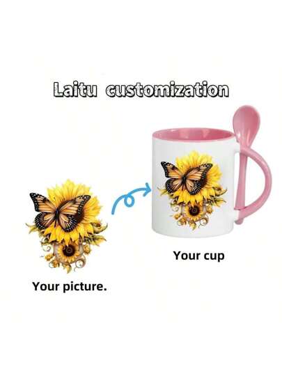 1pc Customized 11oz Creative Ceramic Mug With Spoon, Great Gift For Girlfriend, Friend, Coworker, Boss, Birthday, Party, Holiday, Essential For Home & Office - White - View 1