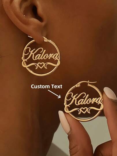 1pc Customized Heart-Shaped Name Earrings, Women's Stainless Steel Fashion Jewelry, Minimalist And Elegant, Suitable For Daily Wear, Thanksgiving, Christmas, Halloween And Other Occasions, Gold, Fashionable, Colorful, Retro, Suitable For Anniversary, Birthday And Other Occasions - Multicolor - View 1