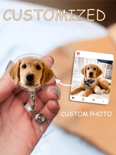 1pc Customized Key Chain Badge Reel - Personalized Photo (Pet, Baby, Star, Company Logo) Acrylic Retractable Badge Reel, Interesting Photo Badge Reel, Suitable For All Seasons - Customized Pet Badge Reel - Nurse Badge Reel With Photo - Campus Badge Reel - Transparent - View 1
