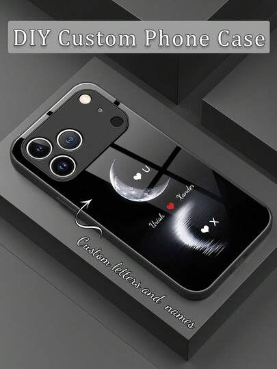 1pc Customized Name/Letter Phone Case, Moonlight Soundwave Pattern Liquid TPU Full-Wrap + Tempered Glass Material, Shock-Resistant & Scratch-Resistant Phone Cover Compatible With Apple 17 Pro Max/16 Pro Max/15 Pro/14 Plus/13 Pro/12 Pro Max/11/Xs Max/8/7/6 Plus, S24 Ultra/S25 Ultra, / Accessories - Black - View 1