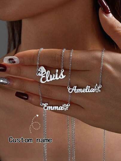 1pc Customized Name Necklace / Christmas Theme Necklace / Gold Name Necklace / Delicate Necklace / Personalized Name Necklace / Gift For Her / Christmas Gift - Silver - View 1