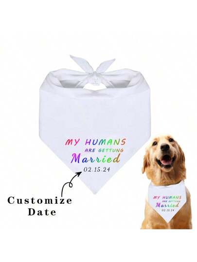 1pc Customized Pet Scarf, Wedding Date Custom Made Photo Prop, Customized Dog Bib With Wedding Date - White - View 1