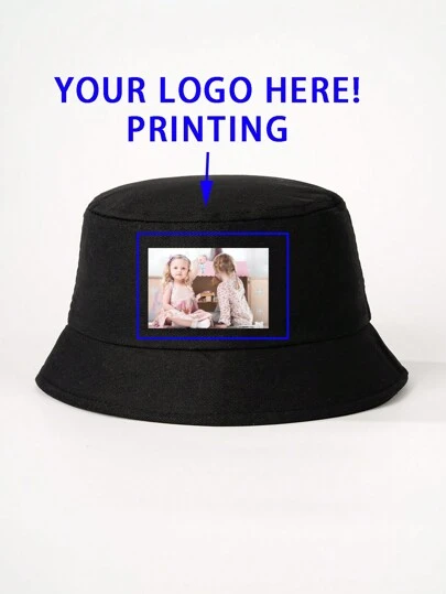 1pc Customized Photo Printed Kids Bucket Hat, Outdoor Sun Protection Casual Hat For Boys & Girls, Suitable For Spring Autumn Travel Beach Holiday Back To School Winter Gift Ideas Boy Girl Valentine's Day - Black - View 1