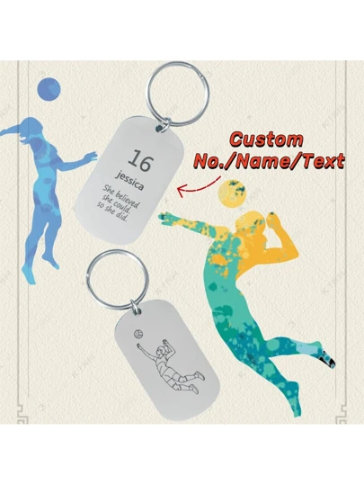 1pc Customized Stainless Steel Laser Engraved Volleyball Girl Keychain, Club Volleyball Fan Personalized Key Chain For School/Graduation Gifts - Silver - View 1