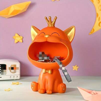 1pc Cute Big Mouth Cat Decorative Storage Box, Can Be Used As A Cabinet/Desk Organizer Or Room Decor - Multicolor - View 1
