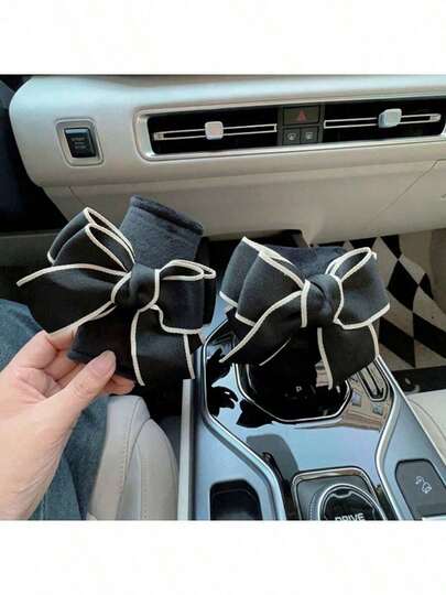 1pc Cute Bow Decoration Short Velvet Car Shift Cover And Handbrake Cover, Gloves, Exquisite Decoration Of Car Interior - Black - View 1