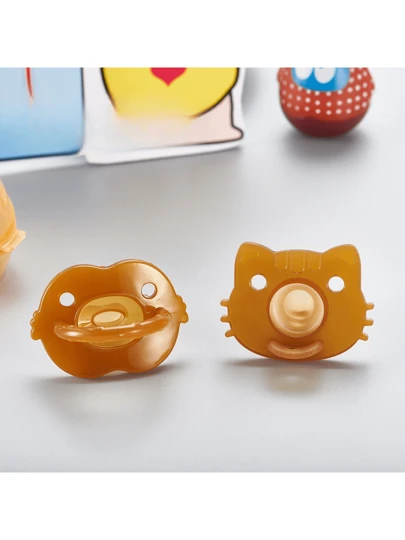 1pc Cute Cat Head Shaped Baby Pacifier - Yellow - View 1
