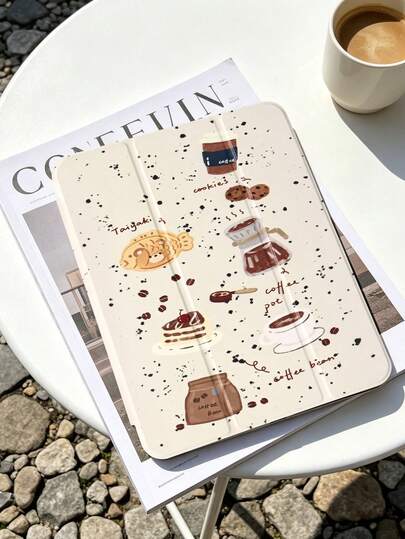 1 chiếc ốp lưng máy tính bảng vẽ hình bánh cà phê và cá dễ thương, tương thích với iPad Mini4/Mini5/Mini6/Mini7/Air/Air2/9.7/10.2/10.5/Air4/Air5/10.9/Pro 11-Inch/Thế hệ thứ 10/ Air 11-In.(M2)-2024/ Pro11-In.(M4)-2024/Air 11-Inch (M3) 2025/ (A16) 11 Inch Thế hệ thứ 11 2025/ Air 8(M4)2026(11-Inch), Galaxy Tab A8 10.5 Inch 2022, tích hợp khe cắm bút cảm ứng, chân đế gập 3 lần, bảo vệ cạnh mềm TPU, chức năng ngủ/thức từ tính, ốp lưng máy tính bảng tối giản/sáng tạo/vui nhộn/cá nhân hóa.