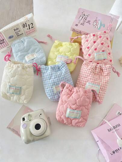 1pc Cute Quilted Camera Storage Bag, Soft Padded Anti-Shock Anti-Dust Small Pouch, Large Capacity Makeup Bag, Organizer Bag, Drawstring Design For Convenient Storage, Suitable For Students, Men, Women, Ideal Gift For Festivals, Christmas, Birthday - Multicolor - View 1
