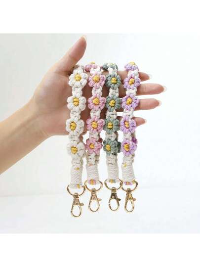 1pc Daisy Flower Mobile Phone Lanyard Wrist Strap Bohemian Hand Woven Flower Mobile Phone Rope Phone Rope, Keychain, Accessory Decoration - Multicolor - View 11
