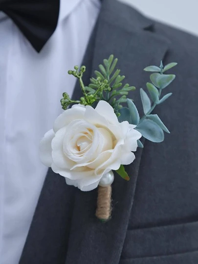 1pc Delicate Rose & Woodland Series High-End Boutonniere For Wedding, Party Valentine's Day Valentines - Multicolor - View 1