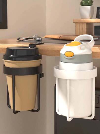 1pc Desk Edge Mounted Cup Holder, Office Desk Top Water Cup Storage Clip Stand, Cup Tray Organizer - A - View 1