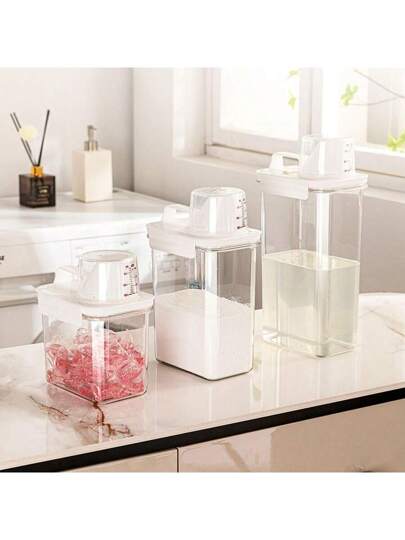 1pc Detergent Container With Measuring Cup, Detergent Distributor And Laundry Fragrance Booster Bead Distributor, Used For Sorting And Storage In Laundry Room, Suitable For Powder And Laundry Liquid. - Clear - View 1