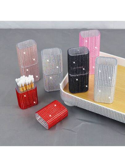 1pc Diamond Inlaid Travel Storage Box With Swabs, Dental Floss, Toothpicks For Small Items Bag, Room Decor, Bags, Makeup Bag, Vanity, Travel, Make Up Bag, Travel Essentials, Organizer, Storage, Travel Essential, Makeup Organizer, Makeup Bags, Toiletry Bag, Desk Organiser, Cosmetic Bag, Makeup Pouch, Make Up Organizer, Vanity Accessories, Make Up Pouch, Make Up Bags, Jewellery Box, Pouch, Makeup Brush Holder, Brush Holder, Perfume Organiser, Pouch Bag,Gifts For Women,Christmas Gifts,Gift Ideas For Women - Multicolor - View 1
